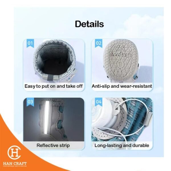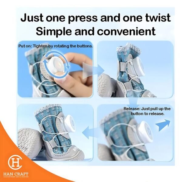 These adjustable twist lock dog boots are designed for big dogs, providing a secure and comfortable fit for all season outdoor use. The innovative one-click twist knob allows easy adjustment to tighten or loosen the boots, ensuring they stay firmly on your dog’s feet. Made with durable and dirt resistant materials, the boots protect paws from mud, rough terrain, and everyday wear. Ideal for walks, hikes, or outdoor adventures, these boots combine practicality, comfort, and paw protection for active big dogs.