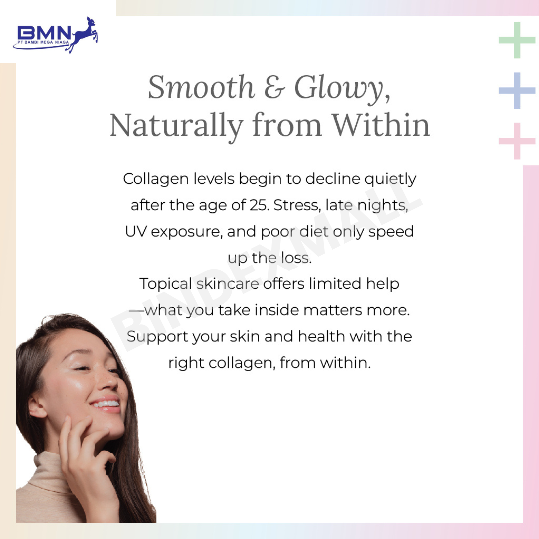 Kemudian, tekstur kulit juga berangsur membaik. Kulit tampak lebih halus, lembut, dan bercahaya. Dengan kata lain, tampilan glow up tidak hanya berasal dari makeup, tetapi juga dari kondisi kulit yang terawat. Karena itu, suplemen ini cocok untuk Anda yang ingin memperkuat hasil skincare harian dari dalam tubuh.