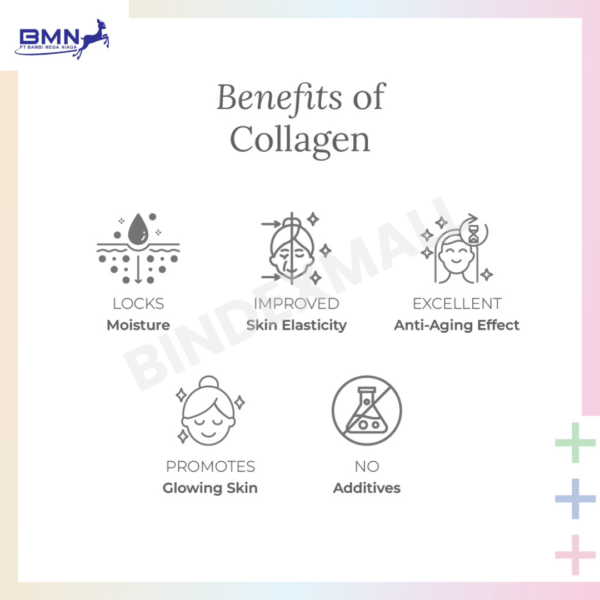Selain itu, kolagen kecantikan ini juga membantu menjaga struktur kulit. Anda memberikan dukungan nutrisi yang berperan penting dalam menjaga kekuatan lapisan kulit. Karena itu, kulit tidak mudah tampak lelah. Tampilan wajah pun lebih segar, cocok untuk Anda yang aktif bekerja, sering beraktivitas di luar ruangan, atau sering terpapar AC dan polusi.