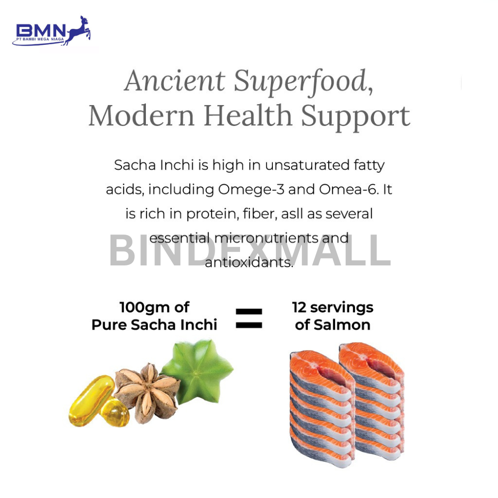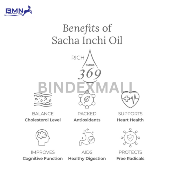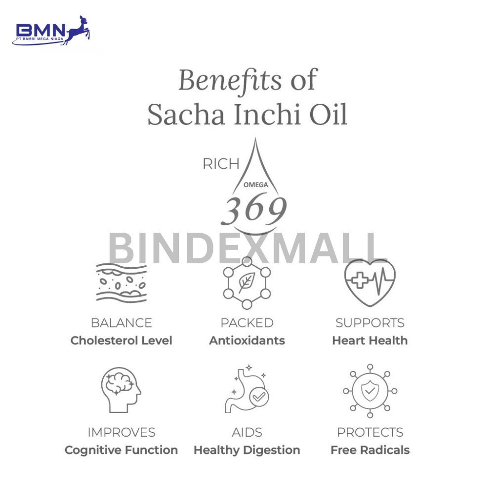 Sacha Inchi dikenal sebagai salah satu sumber omega-3 nabati terbaik. Kandungan ALA yang tinggi membantu tubuh mengurangi peradangan, menjaga kesehatan jantung, dan mendukung fungsi otak. Karena itu, minyak ini sangat cocok Anda jadikan sebagai bagian dari pola makan harian. Rasanya ringan dengan aroma kacang yang lembut, sehingga mudah berpadu dengan berbagai hidangan seperti salad, smoothie, atau tumisan.