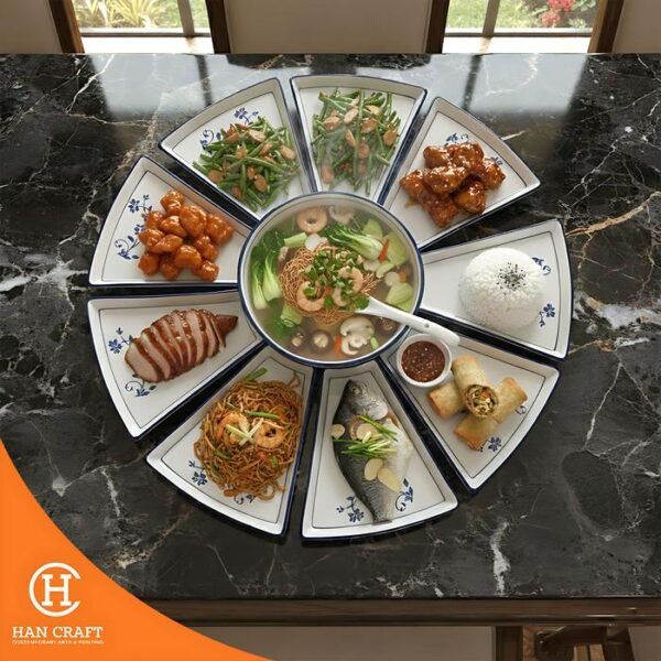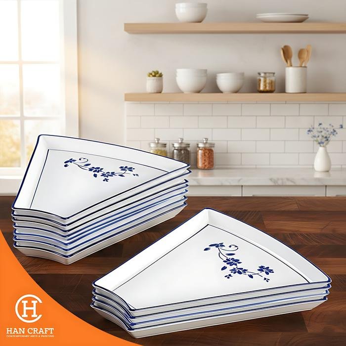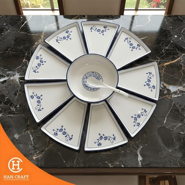 Set Reunion Plate Blue Pattern Ceramic