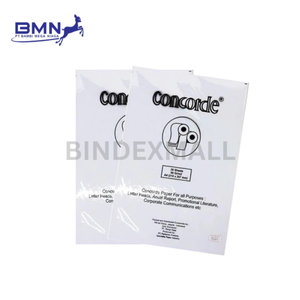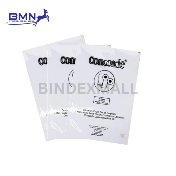Permukaan kertas Concorde terkenal halus dan elegan. Warna putih bersih membantu teks dan gambar terlihat jelas. Dokumen tampak lebih meyakinkan ketika Anda serahkan kepada atasan, klien, atau pihak lain. Karena sedikit lebih tebal, kertas ini terasa nyaman saat dipegang. Kertas ini cocok untuk surat resmi, kop surat perusahaan, dan dokumen yang ingin Anda simpan jangka panjang.