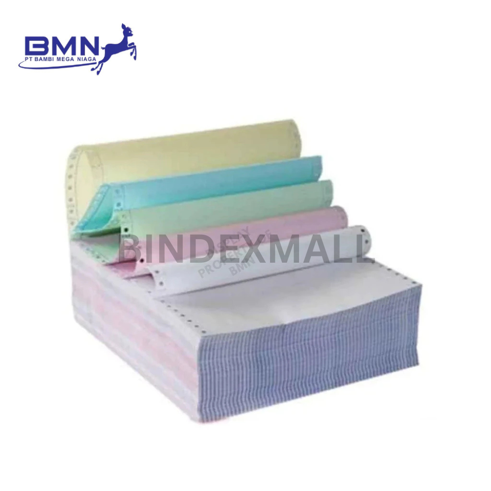 Kertas continuous form ini hadir dalam 5 warna berbeda: Putih, Pink, Kuning, Hijau, dan Biru. Sistem warna ini sangat membantu dalam kategorisasi dokumen. Misalnya, lembar putih untuk arsip perusahaan, pink untuk customer, kuning untuk keuangan, hijau untuk logistik, dan biru untuk gudang. Karena itu, setiap departemen langsung mendapatkan salinan dengan warna yang sesuai, mempercepat alur kerja dan mengurangi kesalahan distribusi.