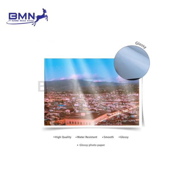 Pertama, teknologi fast drying membuat tinta cepat menyerap dan mengering. Akibatnya, hasil cetakan tidak mudah luntur atau belepotan saat Anda sentuh. Kedua, lapisan water resistant melindungi foto dari percikan air dan kelembaban. Kemudian, permukaan halus dan mengkilap menghasilkan warna lebih tajam dengan detail sempurna.