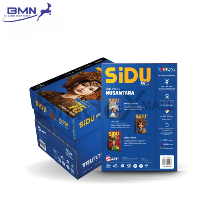 Apakah Anda sedang mencari kertas HVS A4 putih 70 gsm SIDU 1 rim untuk print dan fotokopi yang berkualitas tinggi namun tetap terjangkau? SIDU dari Sinar Dunia adalah solusi yang tepat! Sudah digunakan jutaan orang di kantor, sekolah, kampus, dan rumah tangga seluruh Indonesia, kertas ini menjadi pilihan andalan untuk kebutuhan cetak sehari-hari.