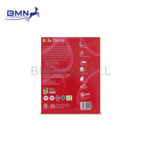Anda dapat menggunakan Kertas Quarto Bola Dunia 80gsm pada printer inkjet, printer laser, maupun mesin fotokopi. Setiap lembar masuk ke tray dengan mulus sehingga proses cetak berjalan lebih lancar. Di sisi lain, kertas ini juga enak untuk menulis manual dengan pulpen atau pensil. Tinta tidak mudah melebar, tulisan tetap rapi, dan halaman tampak bersih. Dengan demikian, kertas ini cocok untuk catatan meeting, form administrasi, maupun buku kerja harian.