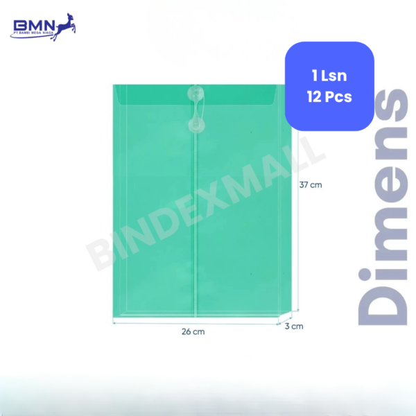 Di samping itu, dengan dimensi 26 x 3 x 37 cm, map amplop tali ini memiliki ukuran yang sangat ideal. Kemudian, kapasitas 3 cm memungkinkan Anda menyimpan berbagai dokumen dengan rapi. Sebagai hasilnya, map ini mudah dibawa ke mana saja tanpa memakan banyak ruang dalam tas Anda.