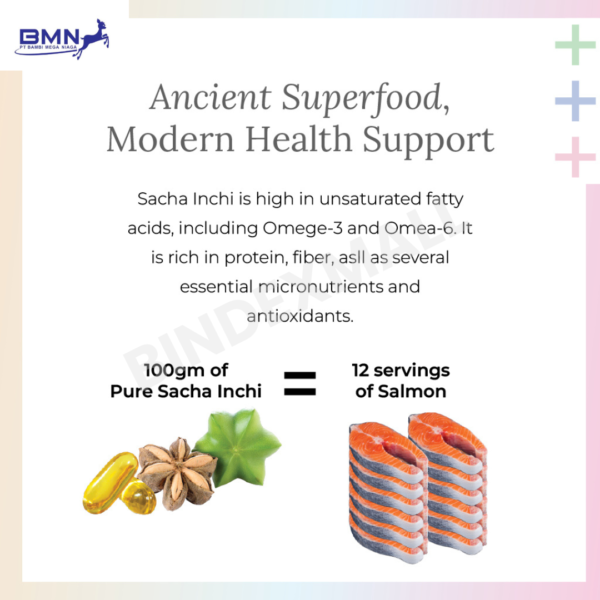 Tidak hanya itu, minyak Sacha Inchi juga mengandung asam amino esensial. Asam amino ini berperan sebagai komponen penting dalam pembentukan dan pemeliharaan jaringan tubuh. Dengan dukungan nutrisi yang tepat, tubuh dapat bekerja lebih optimal. Selain itu, kandungan ini juga membantu menunjang sistem kekebalan tubuh sehingga Anda dapat tetap aktif sepanjang hari.