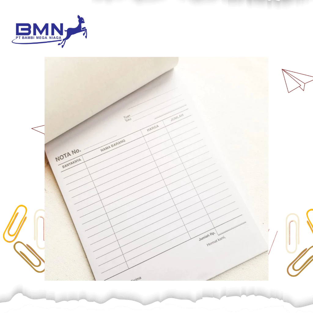 Merek Paperline menjamin keaslian 100% produk ini. Anda mendapatkan 50 lembar nota dengan format 1 rangkap yang siap pakai. Ukuran standar memudahkan penyimpanan dalam laci kasir atau tas kerja Anda.
