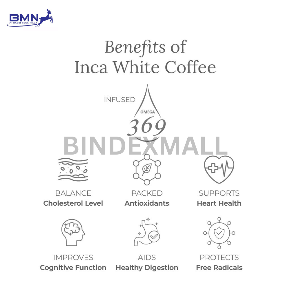 Selain rasanya yang menenangkan, kopi putih Inca juga mengandung antioksidan alami yang membantu tubuh melawan radikal bebas. Kandungan ini membuat minuman ini bukan hanya enak, tetapi juga memberikan manfaat kesehatan tambahan.