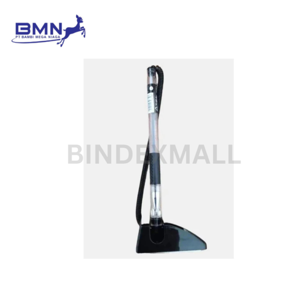 Desk pen ini dirancang khusus untuk area yang banyak digunakan bergantian oleh pelanggan, seperti loket pembayaran, front office, meja administrasi, hingga meja informasi di sekolah dan klinik. Pengguna cukup menarik pena ke arah tangan, menulis dengan nyaman, lalu meletakkannya kembali. Karena terhubung dengan spiral elastis, pena tidak mudah tercecer atau jatuh ke lantai sehingga proses pelayanan tetap lancar.