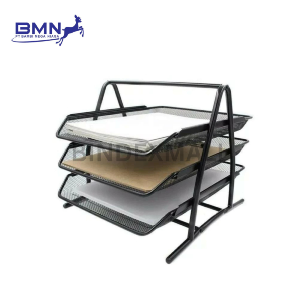 Kemudian, desain 3 susun memberikan kapasitas penyimpanan yang besar. Dengan kata lain, Anda dapat mengategorikan dokumen berdasarkan jenis atau prioritas di setiap susun. Misalnya, susun pertama untuk dokumen penting, susun kedua untuk arsip kerja, dan susun ketiga untuk referensi atau materi bacaan. Dengan demikian, Anda dapat menemukan dokumen dengan cepat dan mudah.
