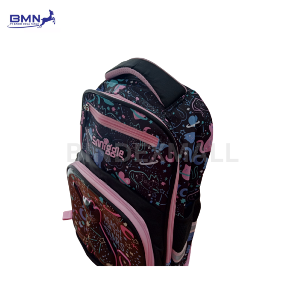 Kedua, tas sekolah ini menawarkan ruang penyimpanan yang sangat luas. Anda dapat memasukkan buku pelajaran, map, laptop atau tablet, kotak bekal, hingga perlengkapan sekolah lainnya. Smiggle menyediakan tiga ruang utama yang memudahkan anak mengorganisir barang-barangnya. Selanjutnya, dua kantong samping khusus botol minum menambah kepraktisan tas ini.